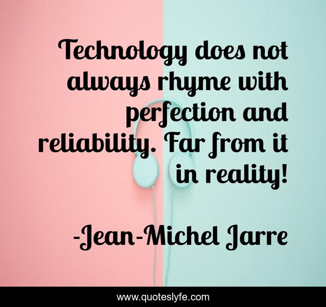 This page presents the quote "Technology does not always rhyme with perfection and reliability. Far from it in reality!". Author of this quote is Jean-Michel Jarre. This quote is about rhyme, perfection, reality,.