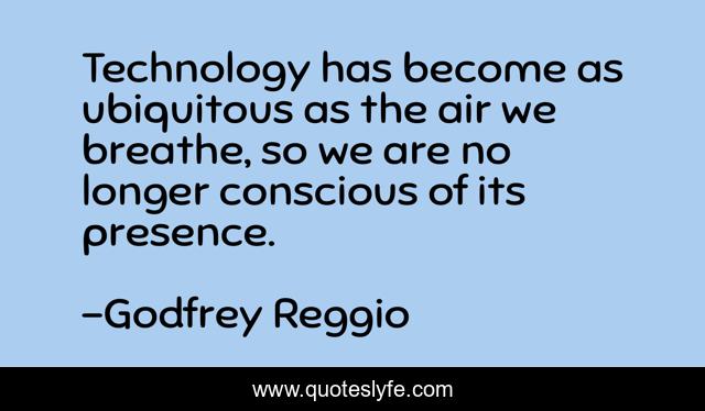 This page presents the quote "Technology has become as ubiquitous as the air we breathe, so we are no longer conscious of its presence.". Author of this quote is Godfrey Reggio. This quote is about breathe, presence, air,.