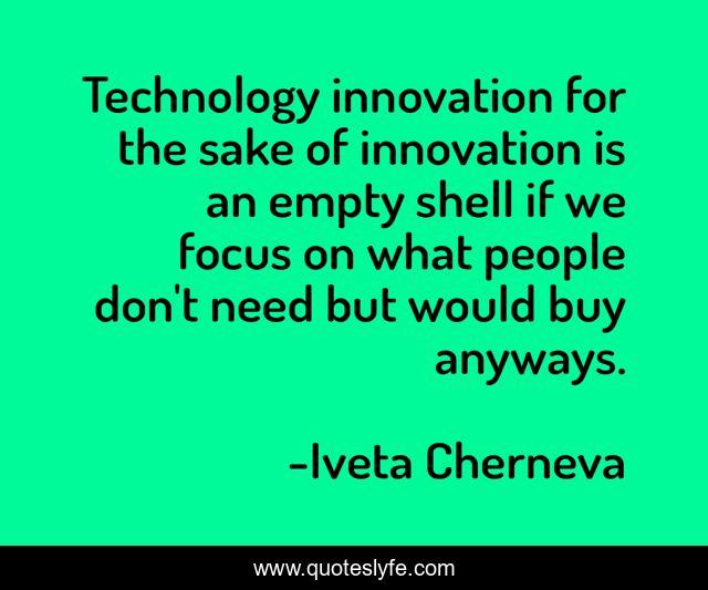 This page presents the quote "Technology innovation for the sake of innovation is an empty shell if we focus on what people don't need but would buy anyways.". Author of this quote is Iveta Cherneva. This quote is about technology, innovation,.