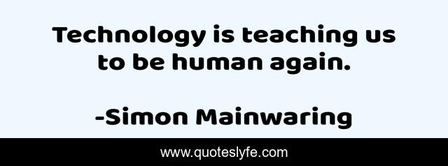 "Simon Mainwaring Quotes." Quoteslyfe.com, 2025. Sun. 07 Dec. 2025. <https://www.quoteslyfe.com/quote/Technology-is-teaching-us-to-be-human-319969>.