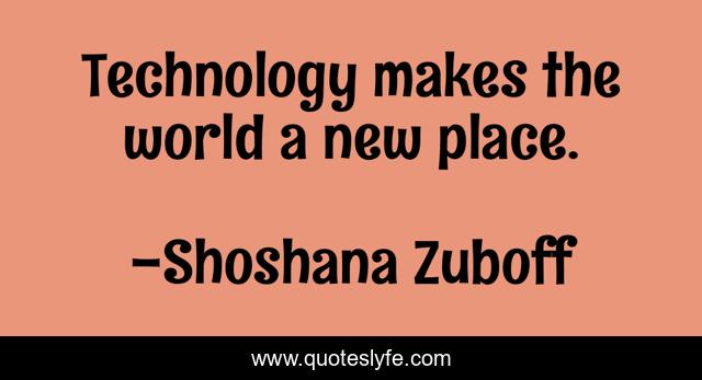 "Shoshana Zuboff Quotes." Quoteslyfe.com, 2025. Fri. 05 Dec. 2025. <https://www.quoteslyfe.com/quote/Technology-makes-the-world-a-new-place-320102>.