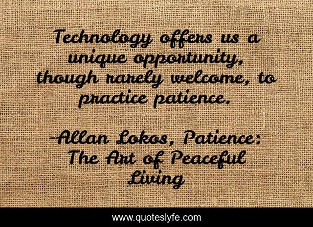 "Allan Lokos, Patience: The Art of Peaceful Living Quotes." Quoteslyfe.com, 2025. Sun. 07 Dec. 2025. <https://www.quoteslyfe.com/quote/Technology-offers-us-a-unique-opportunity-though-134968>.