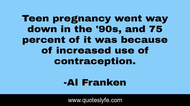 This page presents the quote "Teen pregnancy went way down in the '90s, and 75 percent of it was because of increased use of contraception.". Author of this quote is Al Franken. This quote is about down, pregnancy, way,.