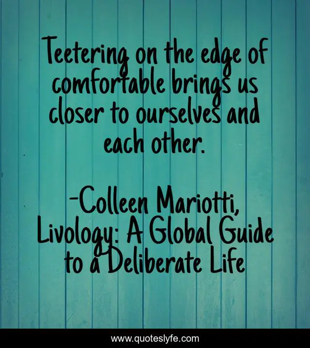 "Colleen Mariotti, Livology: A Global Guide to a Deliberate Life Quotes." Quoteslyfe.com, 2025. Fri. 05 Dec. 2025. <https://www.quoteslyfe.com/quote/Teetering-on-the-edge-of-comfortable-brings-83352>.