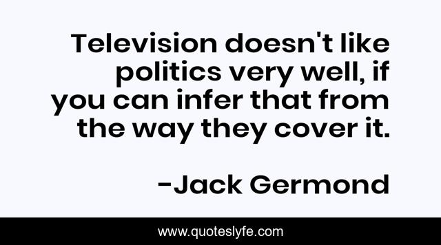 This page presents the quote "Television doesn't like politics very well, if you can infer that from the way they cover it.". Author of this quote is Jack Germond. This quote is about television, way,.