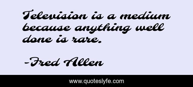 This page presents the quote "Television is a medium because anything well done is rare.". Author of this quote is Fred Allen. This quote is about well done, television, done,.