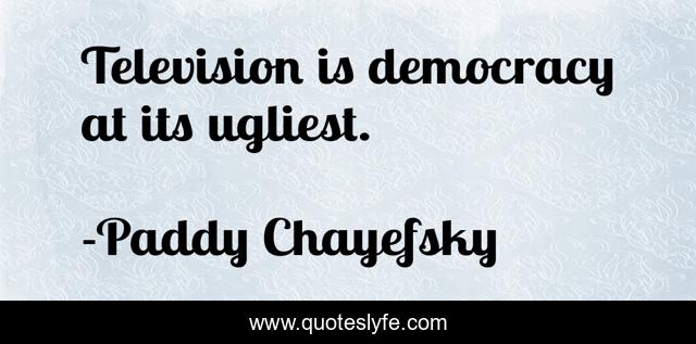 This page presents the quote "Television is democracy at its ugliest.". Author of this quote is Paddy Chayefsky. This quote is about television, democracy,.