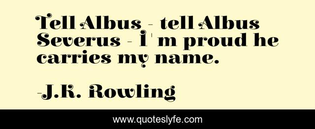 This page presents the quote "Tell Albus - tell Albus Severus - I'm proud he carries my name.". Author of this quote is J.K. Rowling. This quote is about cursed-child, severus-snape, harry-potter,.