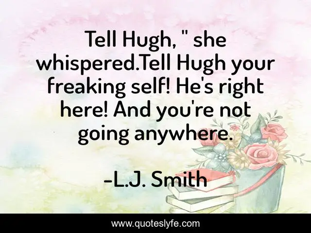 This page presents the quote "Tell Hugh, " she whispered.Tell Hugh your freaking self! He's right here! And you're not going anywhere.". Author of this quote is L.J. Smith. This quote is about heart, morgead, jezebel, night-world, staked, huntress, dying,.