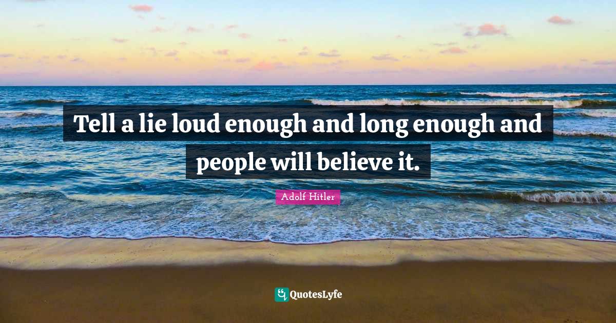 "Adolf Hitler Quotes." Quoteslyfe.com, 2026. Tue. 13 Jan. 2026. <https://www.quoteslyfe.com/quote/Tell-a-lie-loud-enough-and-long-337649>.