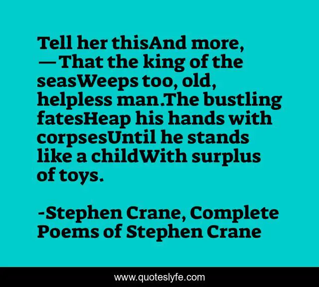 "Stephen Crane, Complete Poems of Stephen Crane Quotes." Quoteslyfe.com, 2025. Tue. 09 Dec. 2025. <https://www.quoteslyfe.com/quote/Tell-her-thisAnd-more-That-the-king-21323>.