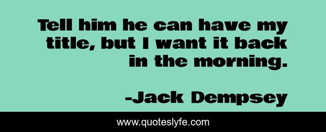 This page presents the quote "Tell him he can have my title, but I want it back in the morning.". Author of this quote is Jack Dempsey. This quote is about back, him,.