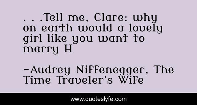 This page presents the quote ". . .Tell me, Clare: why on earth would a lovely girl like you want to marry H". Author of this quote is Audrey Niffenegger, The Time Traveler's Wife. This quote is about funny, comedy,.