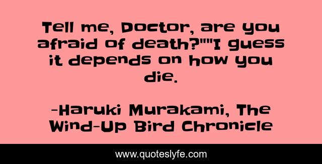 This page presents the quote "Tell me, Doctor, are you afraid of death?""I guess it depends on how you die.". Author of this quote is Haruki Murakami, The Wind-Up Bird Chronicle. .