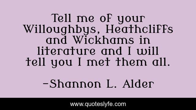 "Shannon L. Alder Quotes." Quoteslyfe.com, 2025. Sat. 06 Dec. 2025. <https://www.quoteslyfe.com/quote/Tell-me-of-your-Willoughbys-Heathcliffs-and-111882>.