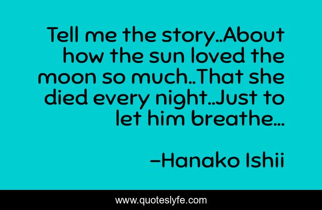 This page presents the quote "Tell me the story..About how the sun loved the moon so much..That she died every night..Just to let him breathe...". Author of this quote is Hanako Ishii. This quote is about sun, love, affection, moon,.