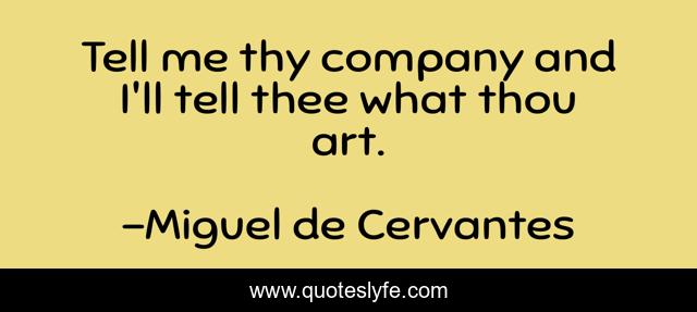 "Miguel de Cervantes Quotes." Quoteslyfe.com, 2025. Mon. 08 Dec. 2025. <https://www.quoteslyfe.com/quote/Tell-me-thy-company-and-I-ll-266020>.