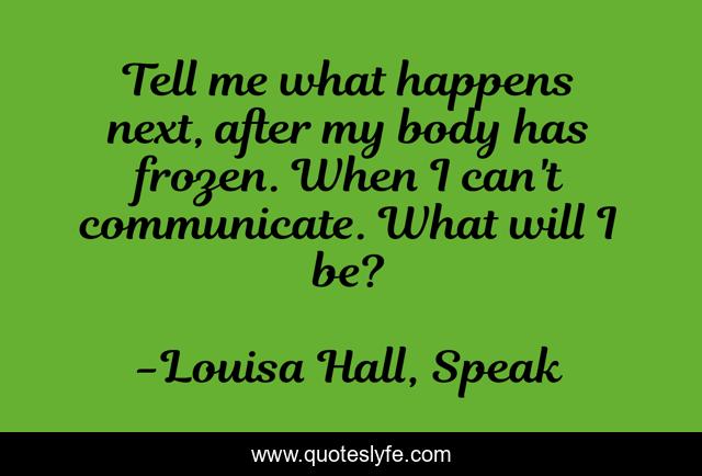 "Louisa Hall, Speak Quotes." Quoteslyfe.com, 2025. Sat. 06 Dec. 2025. <https://www.quoteslyfe.com/quote/Tell-me-what-happens-next-after-my-185372>.