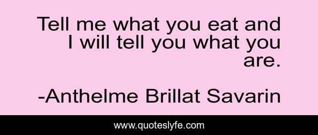 "Anthelme Brillat Savarin Quotes." Quoteslyfe.com, 2025. Fri. 05 Dec. 2025. <https://www.quoteslyfe.com/quote/Tell-me-what-you-eat-and-I-263537>.