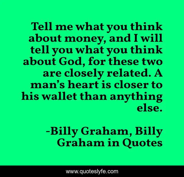 "Billy Graham, Billy Graham in Quotes Quotes." Quoteslyfe.com, 2025. Tue. 09 Dec. 2025. <https://www.quoteslyfe.com/quote/Tell-me-what-you-think-about-money-80400>.