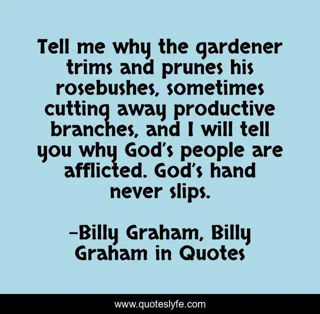"Billy Graham, Billy Graham in Quotes Quotes." Quoteslyfe.com, 2025. Fri. 05 Dec. 2025. <https://www.quoteslyfe.com/quote/Tell-me-why-the-gardener-trims-and-152141>.