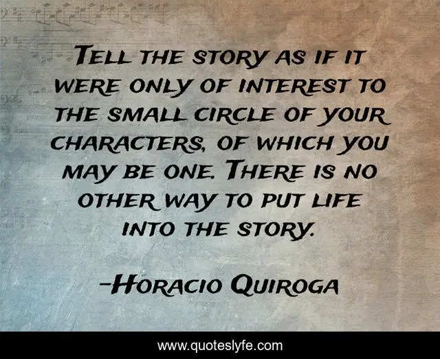 This page presents the quote "Tell the story as if it were only of interest to the small circle of your characters, of which you may be one. There is no other way to put life into the story.". Author of this quote is Horacio Quiroga. This quote is about story, writing,.