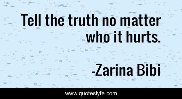 This page presents the quote "Tell the truth no matter who it hurts.". Author of this quote is Zarina Bibi. This quote is about honesty, truth,.