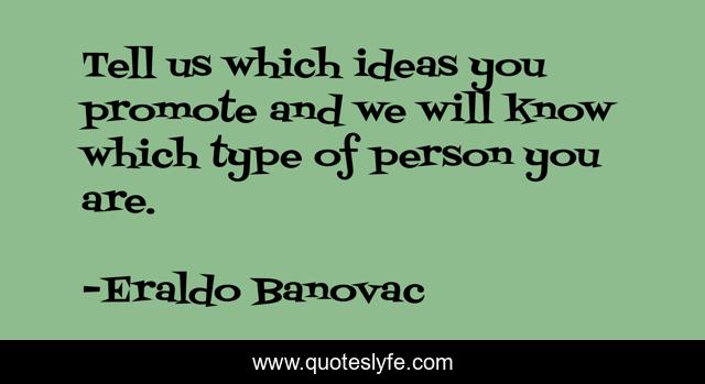 This page presents the quote "Tell us which ideas you promote and we will know which type of person you are.". Author of this quote is Eraldo Banovac. This quote is about confidence, sociology, psychology, positive, motivational, idea, ideas, optimistic, philosophy,.