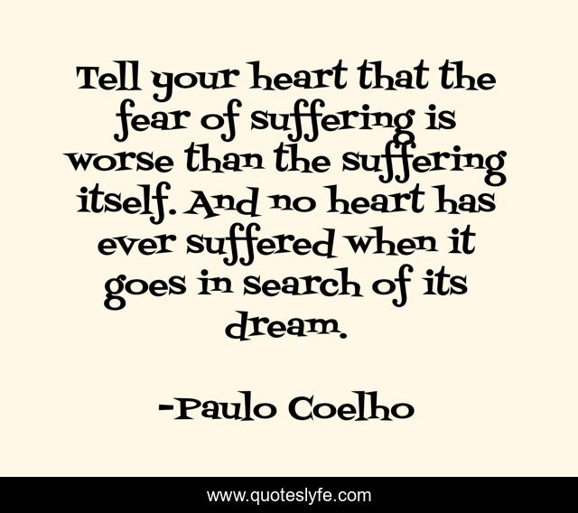 Tell your heart that the fear of suffering is worse than the suffering itself. And no heart has ever suffered when it goes in search of its dream.