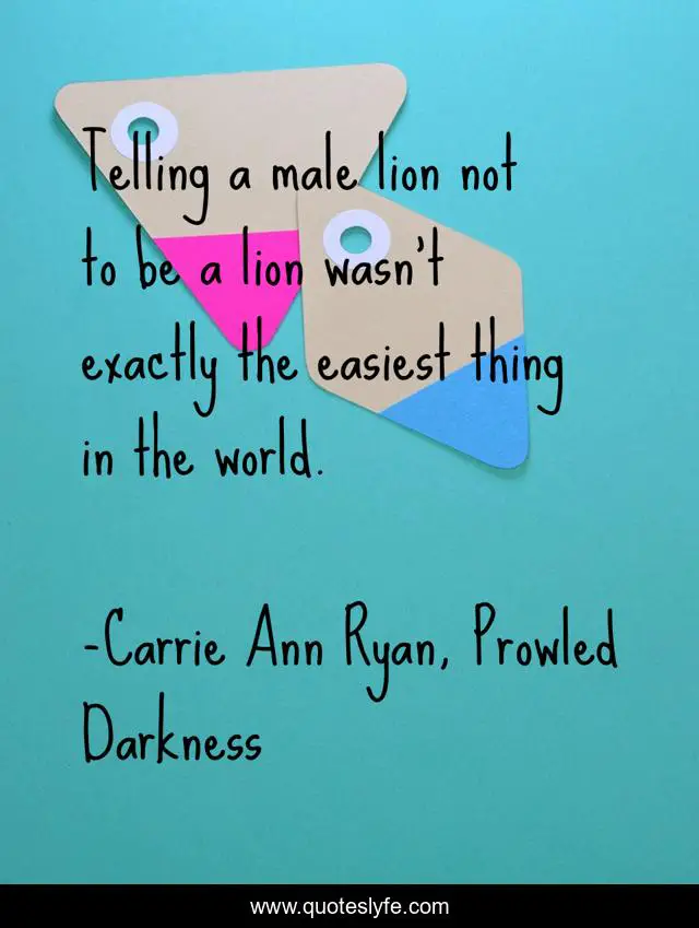 "Carrie Ann Ryan, Prowled Darkness Quotes." Quoteslyfe.com, 2025. Sat. 06 Dec. 2025. <https://www.quoteslyfe.com/quote/Telling-a-male-lion-not-to-be-131894>.