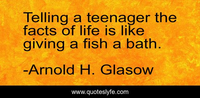 This page presents the quote "Telling a teenager the facts of life is like giving a fish a bath.". Author of this quote is Arnold H. Glasow. This quote is about giving, life, fish,.