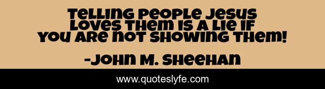 This page presents the quote "Telling people Jesus loves them is a lie if you are not showing them!". Author of this quote is John M. Sheehan. This quote is about truth-of-life, love, affection, lies-we-tell-ourselves,.