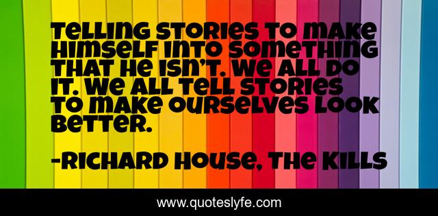 "Richard House, The Kills Quotes." Quoteslyfe.com, 2025. Fri. 05 Dec. 2025. <https://www.quoteslyfe.com/quote/Telling-stories-to-make-himself-into-something-180697>.
