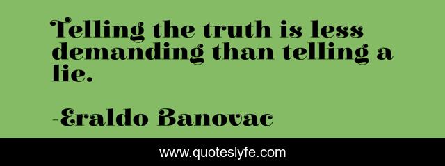 This page presents the quote "Telling the truth is less demanding than telling a lie.". Author of this quote is Eraldo Banovac. This quote is about lie, confidence, motivational, truth, positive, philosophy, truth-inspirational, inspirational, lies,.
