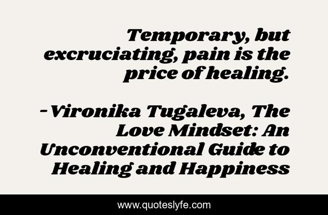 This page presents the quote "Temporary, but excruciating, pain is the price of healing.". Author of this quote is Vironika Tugaleva, The Love Mindset: An Unconventional Guide to Healing and Happiness. This quote is about healing-the-past, pain, healing, wounds,.