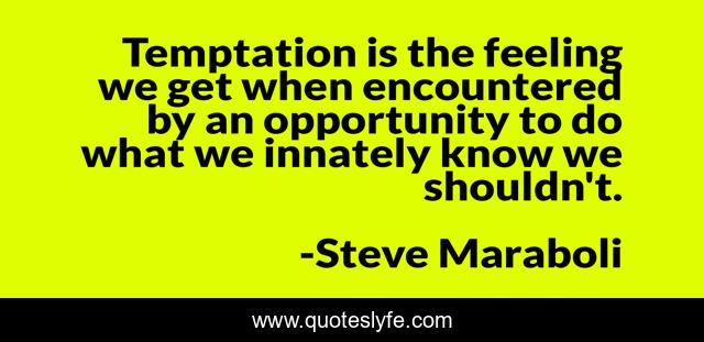 This page presents the quote "Temptation is the feeling we get when encountered by an opportunity to do what we innately know we shouldn't.". Author of this quote is Steve Maraboli. This quote is about life, opportunity-temptation, temptation, choice, inspirational, enthusiasm,.
