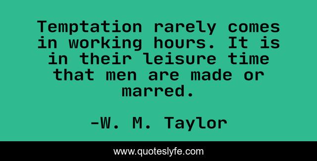 "W. M. Taylor Quotes." Quoteslyfe.com, 2025. Fri. 05 Dec. 2025. <https://www.quoteslyfe.com/quote/Temptation-rarely-comes-in-working-hours-It-277341>.