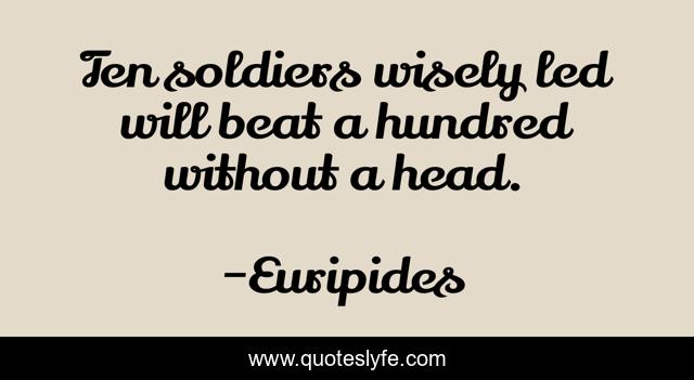 This page presents the quote "Ten soldiers wisely led will beat a hundred without a head.". Author of this quote is Euripides. This quote is about soldiers, head,.