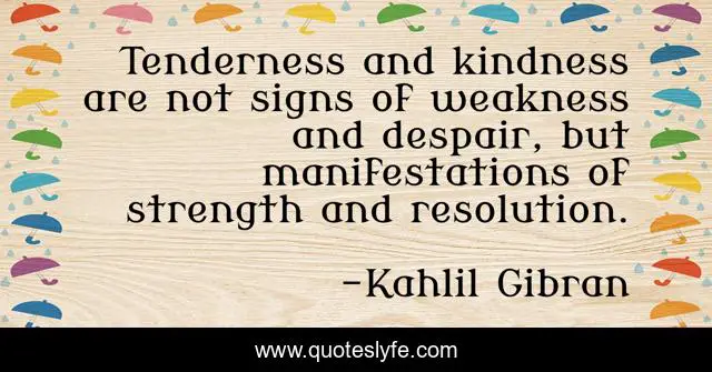 "Kahlil Gibran Quotes." Quoteslyfe.com, 2025. Fri. 05 Dec. 2025. <https://www.quoteslyfe.com/quote/Tenderness-and-kindness-are-not-signs-of-136166>.