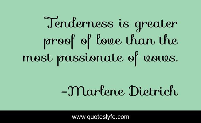 "Marlene Dietrich Quotes." Quoteslyfe.com, 2025. Fri. 05 Dec. 2025. <https://www.quoteslyfe.com/quote/Tenderness-is-greater-proof-of-love-than-267958>.
