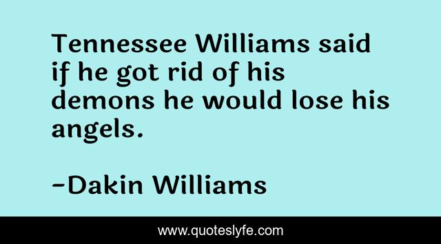 This page presents the quote "Tennessee Williams said if he got rid of his demons he would lose his angels.". Author of this quote is Dakin Williams. This quote is about writers, writing,.