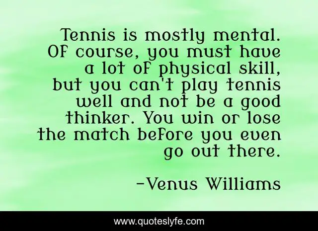 This page presents the quote "Tennis is mostly mental. Of course, you must have a lot of physical skill, but you can't play tennis well and not be a good thinker. You win or lose the match before you even go out there.". Author of this quote is Venus Williams. This quote is about win, win or lose, tennis,.