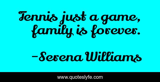 This page presents the quote "Tennis just a game, family is forever.". Author of this quote is Serena Williams. This quote is about game, tennis, forever,.