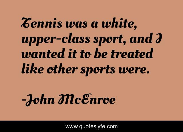 This page presents the quote "Tennis was a white, upper-class sport, and I wanted it to be treated like other sports were.". Author of this quote is John McEnroe. This quote is about white, tennis, like,.