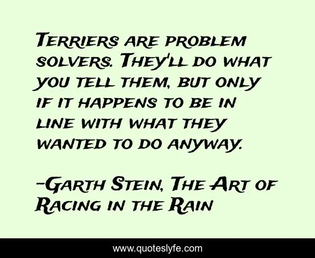 "Garth Stein, The Art of Racing in the Rain Quotes." Quoteslyfe.com, 2025. Fri. 05 Dec. 2025. <https://www.quoteslyfe.com/quote/Terriers-are-problem-solvers-They-ll-do-163081>.
