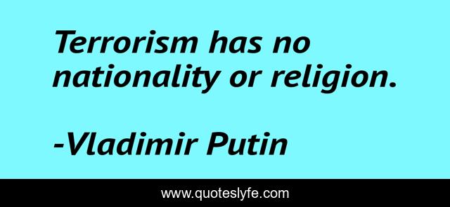 This page presents the quote "Terrorism has no nationality or religion.". Author of this quote is Vladimir Putin. This quote is about nationality, terrorism,.