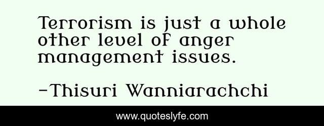 This page presents the quote "Terrorism is just a whole other level of anger management issues.". Author of this quote is Thisuri Wanniarachchi. This quote is about terrorism, anger-management, humor, hilarious,.