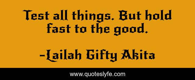 This page presents the quote "Test all things. But hold fast to the good.". Author of this quote is Lailah Gifty Akita. This quote is about proverbs, confidence, good, wise-sayings, motivational, optimistic, don-t-quit, positive, test,.