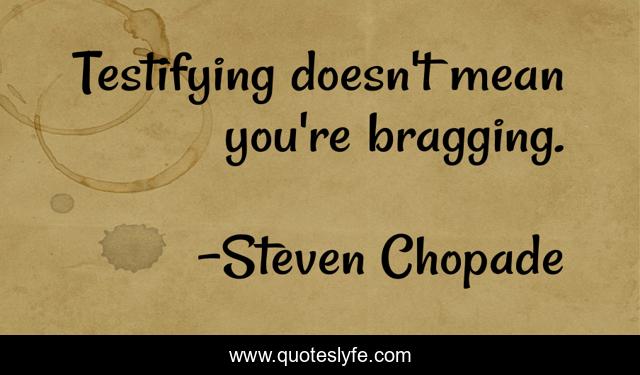 This page presents the quote "Testifying doesn't mean you're bragging.". Author of this quote is Steven Chopade. .
