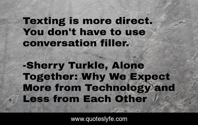 "Sherry Turkle, Alone Together: Why We Expect More from Technology and Less from Each Other Quotes." Quoteslyfe.com, 2025. Fri. 05 Dec. 2025. <https://www.quoteslyfe.com/quote/Texting-is-more-direct-You-don-t-120347>.